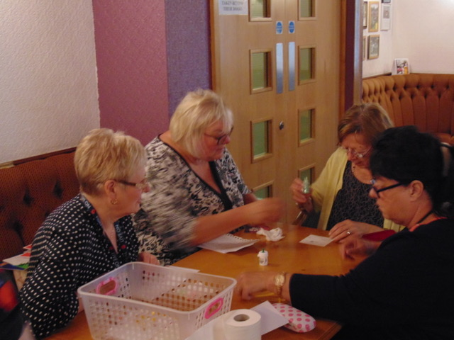 The project was funded from a bring and buy sale organised by Sally Moffett which paid for the materials, with volunteers Sallyanne Kenny and Jan Smith running the sessions. Below are a few pictures of the ladies that took part and the cards that were made …. a great effort to say that some had never done anything like it before.