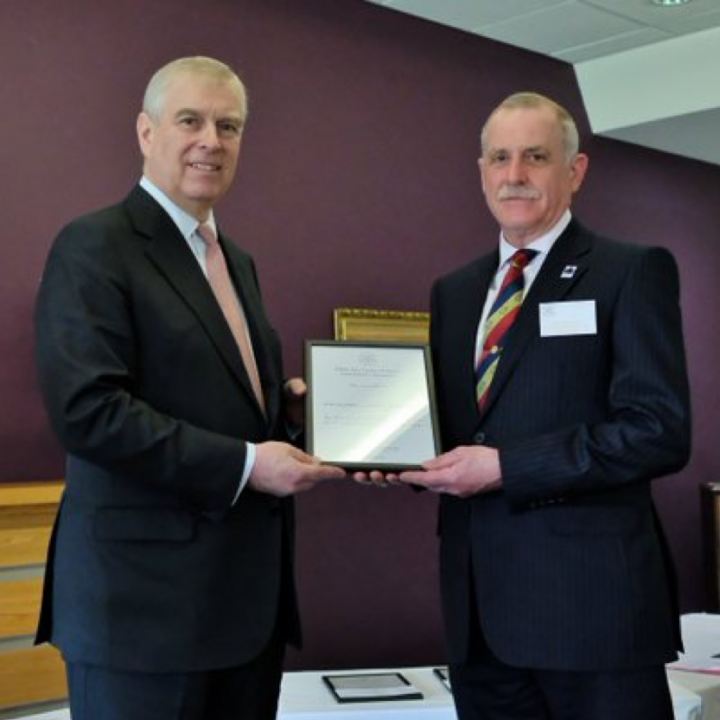 HRH The Duke of York presenting the Duke of York Community Initiative Award to Major Adie Hunt.