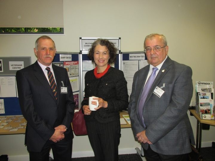 MCVC Chairman, Mr Mac McKenney (L) with President, Maj Adie Hunt and Sarah Champion MP