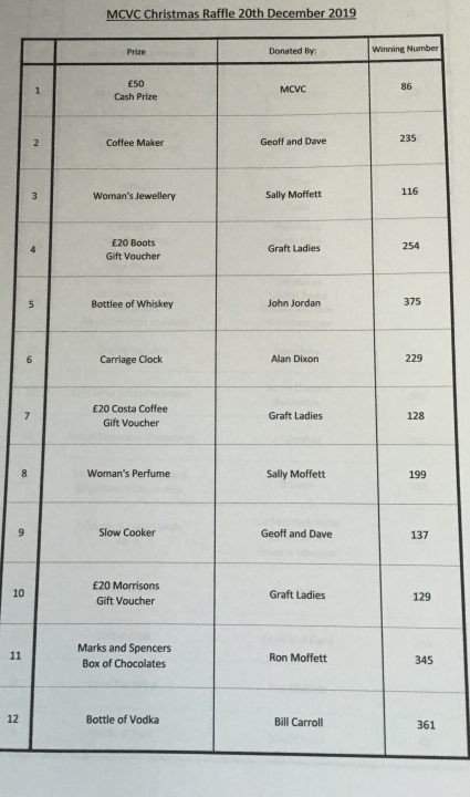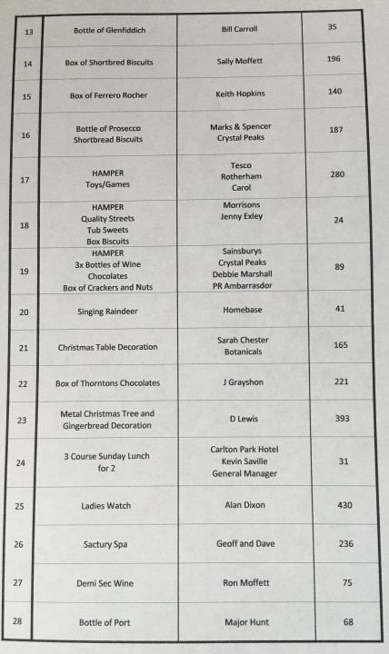 Please find below a lust if the raffle prizes who donated them and the winning tickets numbers ….