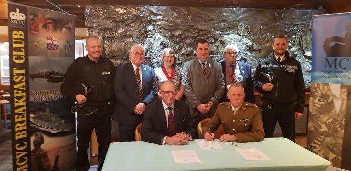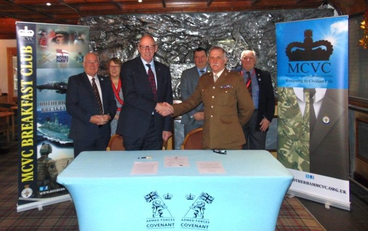 At last Fridays Christmas coffee morning Lt Col McPherson MBE signed the Armed forces covenant on behalf of the MCVC and Major Hunt signed on behalf of the MOD…… pictures below